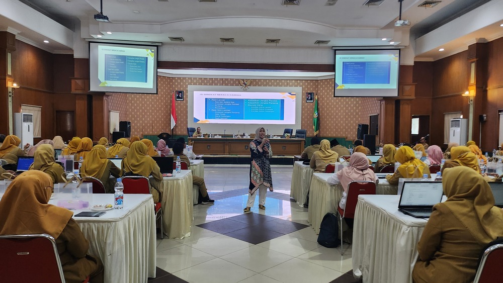 Pada hari pertama, materi disampaikan oleh Ibu Dian Surya Ayu Fatmawati, S.E., M.SA., dari Universitas Brawijaya. Narasumber memaparkan secara komprehensif kerangka akuntansi dalam penyusunan laporan keuangan SKPD, meliputi konsep dasar akuntansi pemerintahan, komponen laporan keuangan, serta praktik pencatatan aset tetap dan jurnal-jurnal yang berkaitan dengan laporan keuangan SKPD. Selain itu, dilakukan diseminasi mendalam mengenai PSAP 18 tentang Pendapatan dari Transaksi Nonpertukaran dan PSAP 19 tentang Pengaturan Bersama. Penyampaian materi berlangsung secara interaktif dan diikuti diskusi aktif dari peserta yang mengangkat berbagai kasus nyata di masing-masing SKPD.