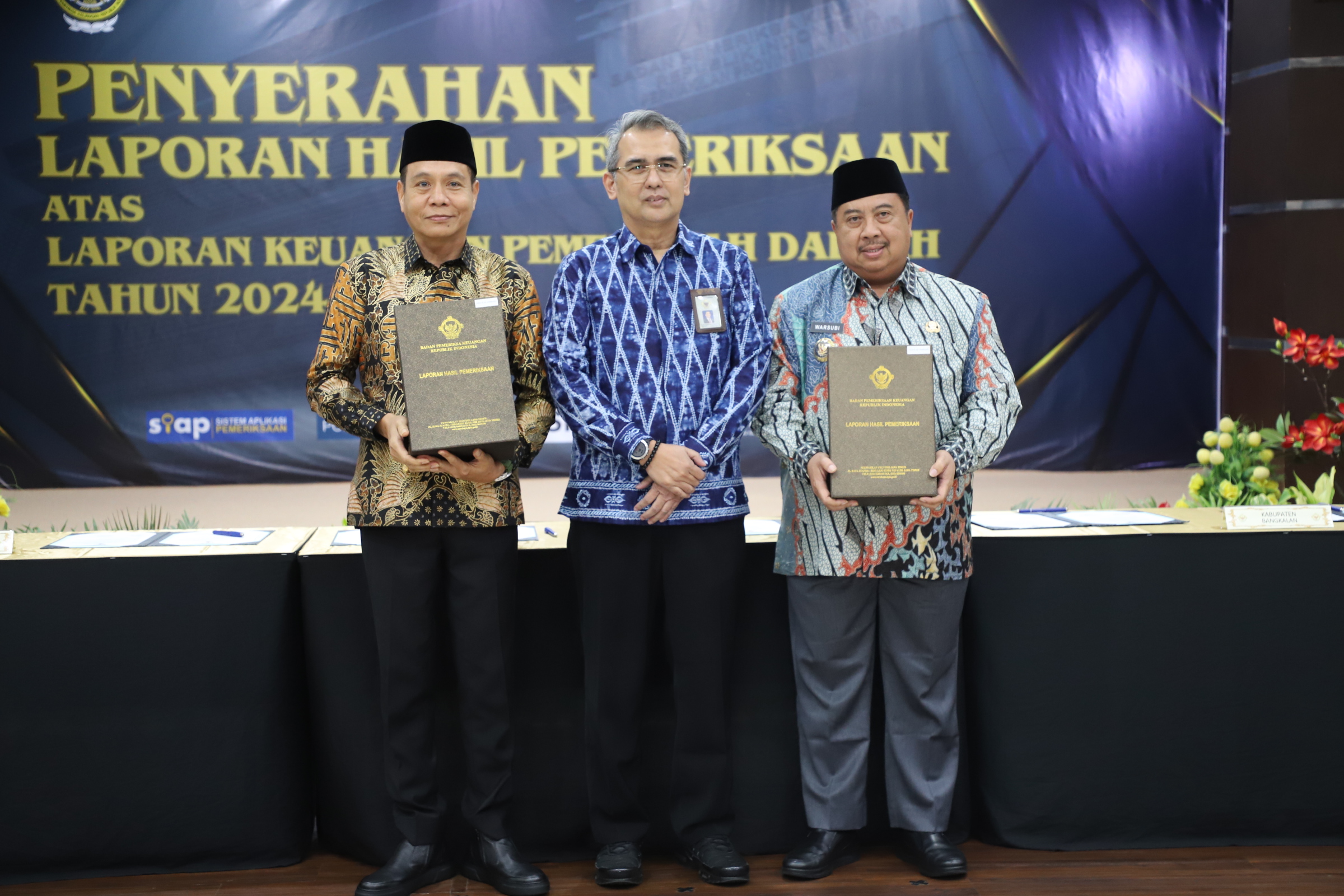 Surabaya - Hari ini Abah Bupati Jombang H.Warsubi didampingi Ketua DPRD Jombang H.Hadi Atmaji menerima Laporan Hasil Pemeriksaan atas Laporan Keuangan Pemerintah Daerah Kabupaten Jombang Tahun 2024 dari Kepala BPK RI Perwakilan Jawa Timur Yuan Candra Djaisin, S.E., M.M. di Kantor BPK RI Perwakilan Jawa Timur.