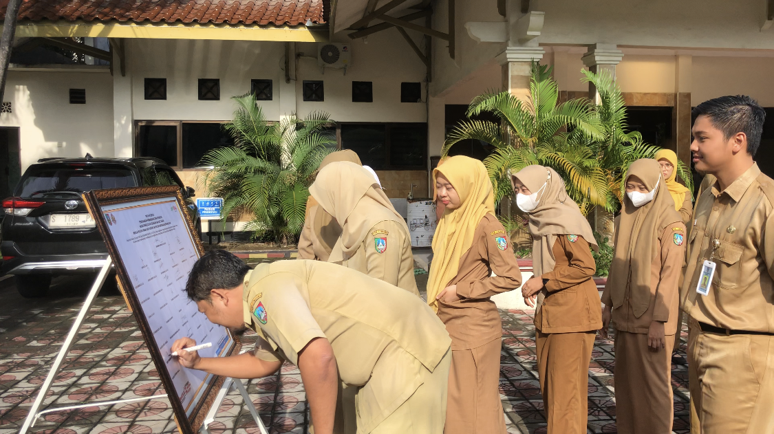Pelaksanaan “Pencanangan Pembangunan Zona Integritas” merupakan langkah strategis BPKAD Jombang untuk dapat bertransformasi menuju Wilayah Bebas dari Korupsi (WBK) dan Wilayah Birokrasi Bersih dan Melayani (WBBM). Komitmen BPKAD Jombang ditunjukkan dengan penandatangan pakta integritas oleh seluruh pegawai BPKAD Jombang.