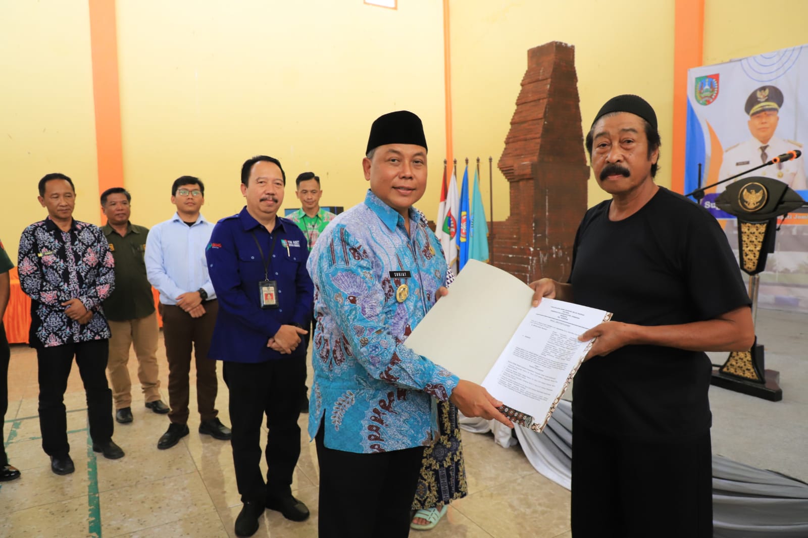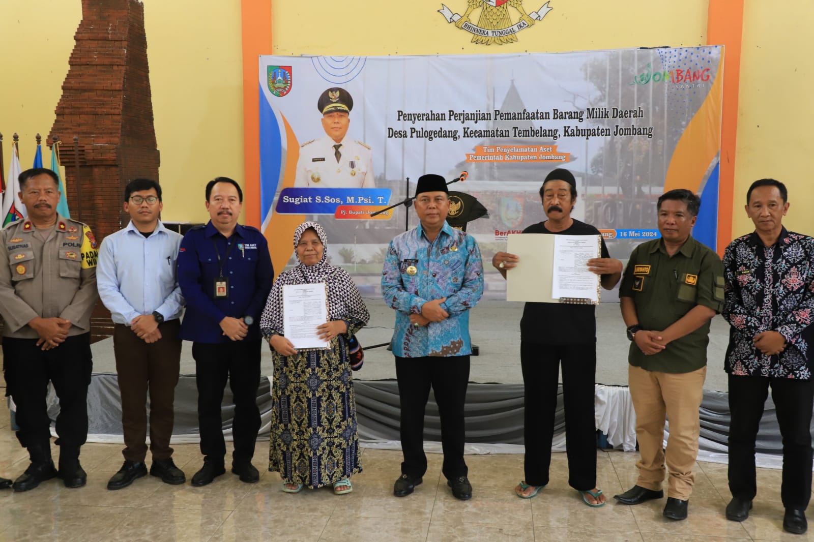 Pemerintah Kabupaten (Pemkab) Jombang melalui Badan Pengelolaan Keuangan dan Aset Daerah Kabupaten Jombang telah menyerahkan perjanjian pemanfaatan Barang Milik Daerah (BMD, Desa Pulogedang di Balai Desa Pulogedang Kecamatan Tembelang pada Kamis (16/05/2024) siang. Yang diserahkan langsung oleh Pj Bupati Jombang Sugiat, S.Sos,.M.Psi.T